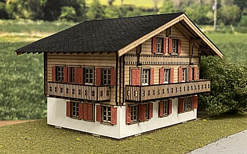 Startseite » Lasercut Bausätze Spur N » Alpiner/Süddeutscher Baustil - Spur N » Ländliche Gebäude » Berner Chalet A1 - Alpenblick