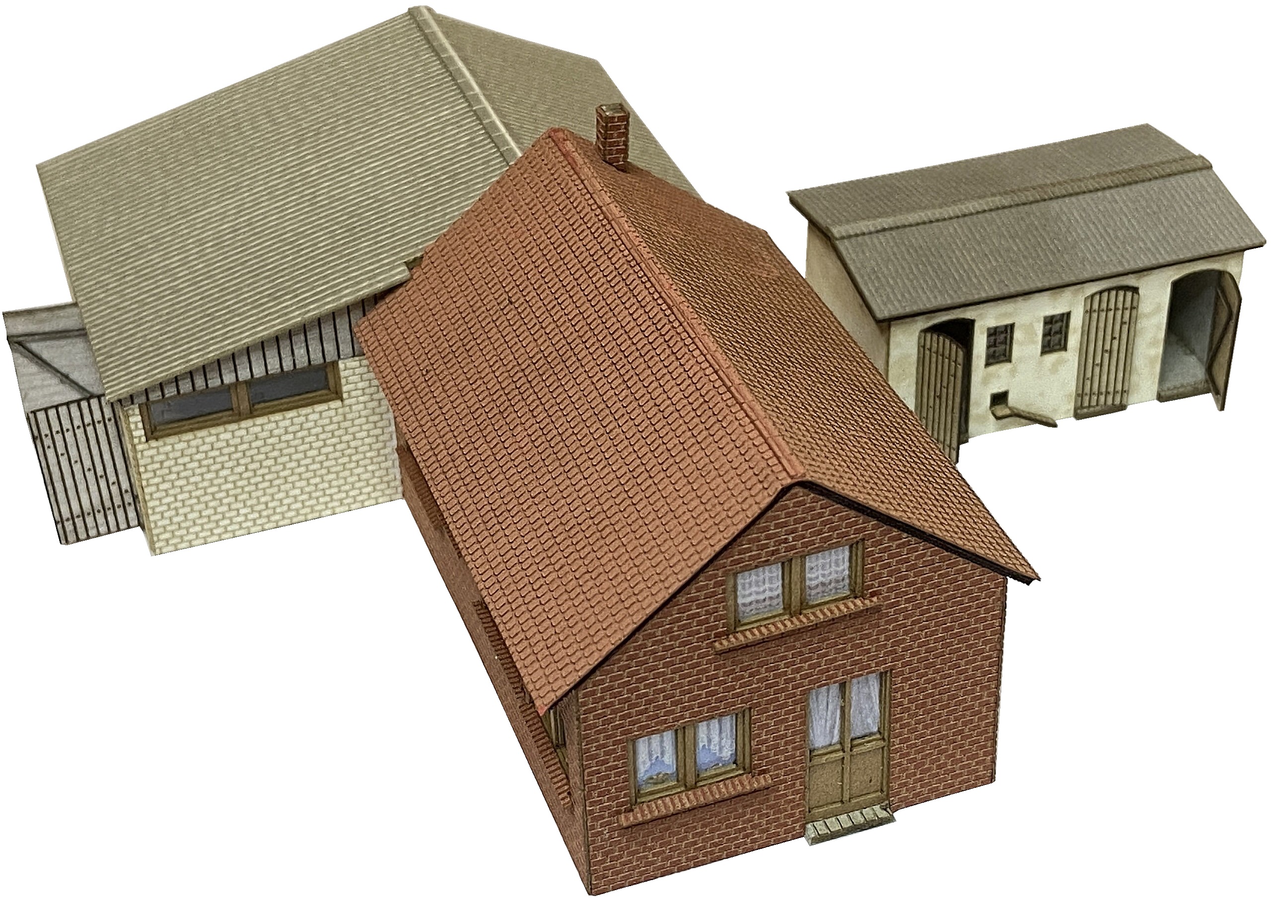 Startseite » Lasercut Bausätze Spur N » Norddeutscher Baustil - Spur N » Ländliche Gebäude » Eingeschossiges Wohnhaus mit Werkstattanbau und Garage