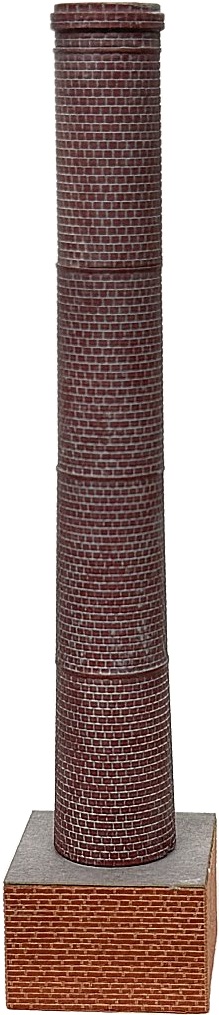 Der Kamin ist wie der Schornstein in unserer Schnapsfabrik im 3D-Druck als gemauerte Version hergestellt. Er besteht us insgesamt 7 Segmenten, die miteinander verklebt werden müssen. Dadurch ergibt sich die Möglichkeit, ihn individuell in der Höhe den gewünschten Bedingungen anzupassen.