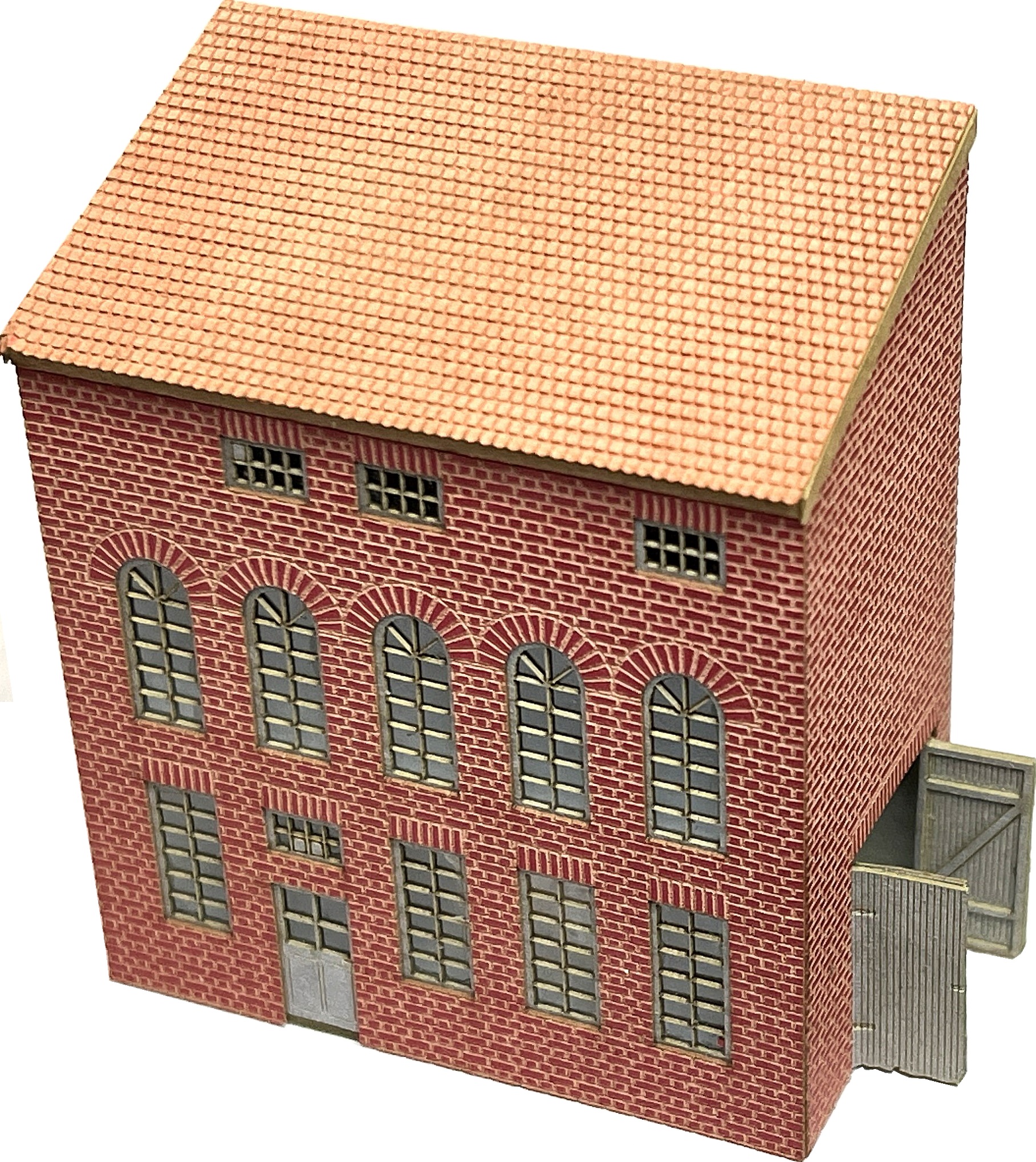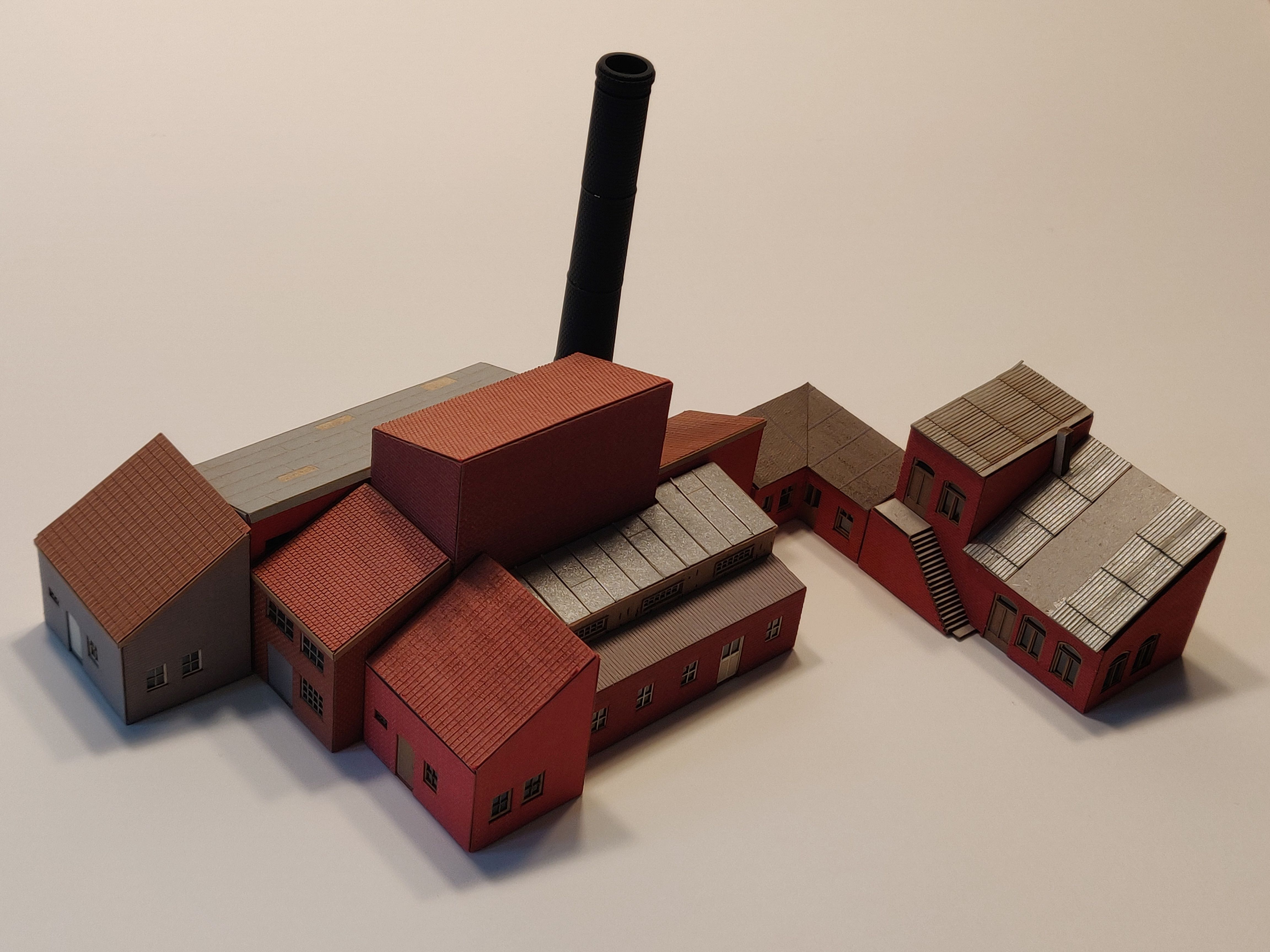 Lieferumfang: Der Bausatz besteht aus einer Graupappe-Grundstruktur, fein gravierten Wandelementen in Klinkernachbildung und sehr feinen Fensternachbildungen aus durchgefärbtem Fotokarton. Türen und Tore lassen sich öffnen. Dachteile aus graviertem Fotokarton runden die Optik ab.