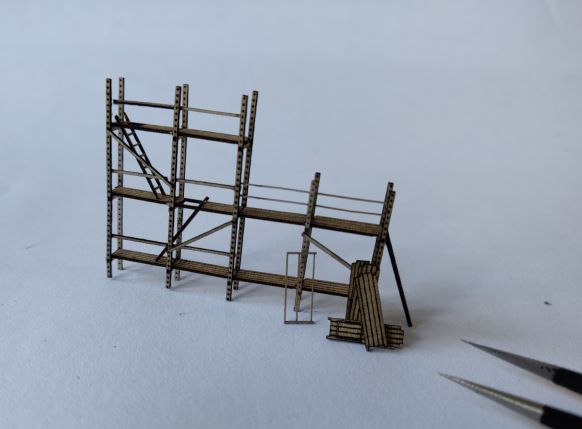Bausatz eines Holzgerüstes, wie sie in der Ep II-IV im Einsatz waren, ehe Stahlrohrgerüste zum Einsatz kamen.