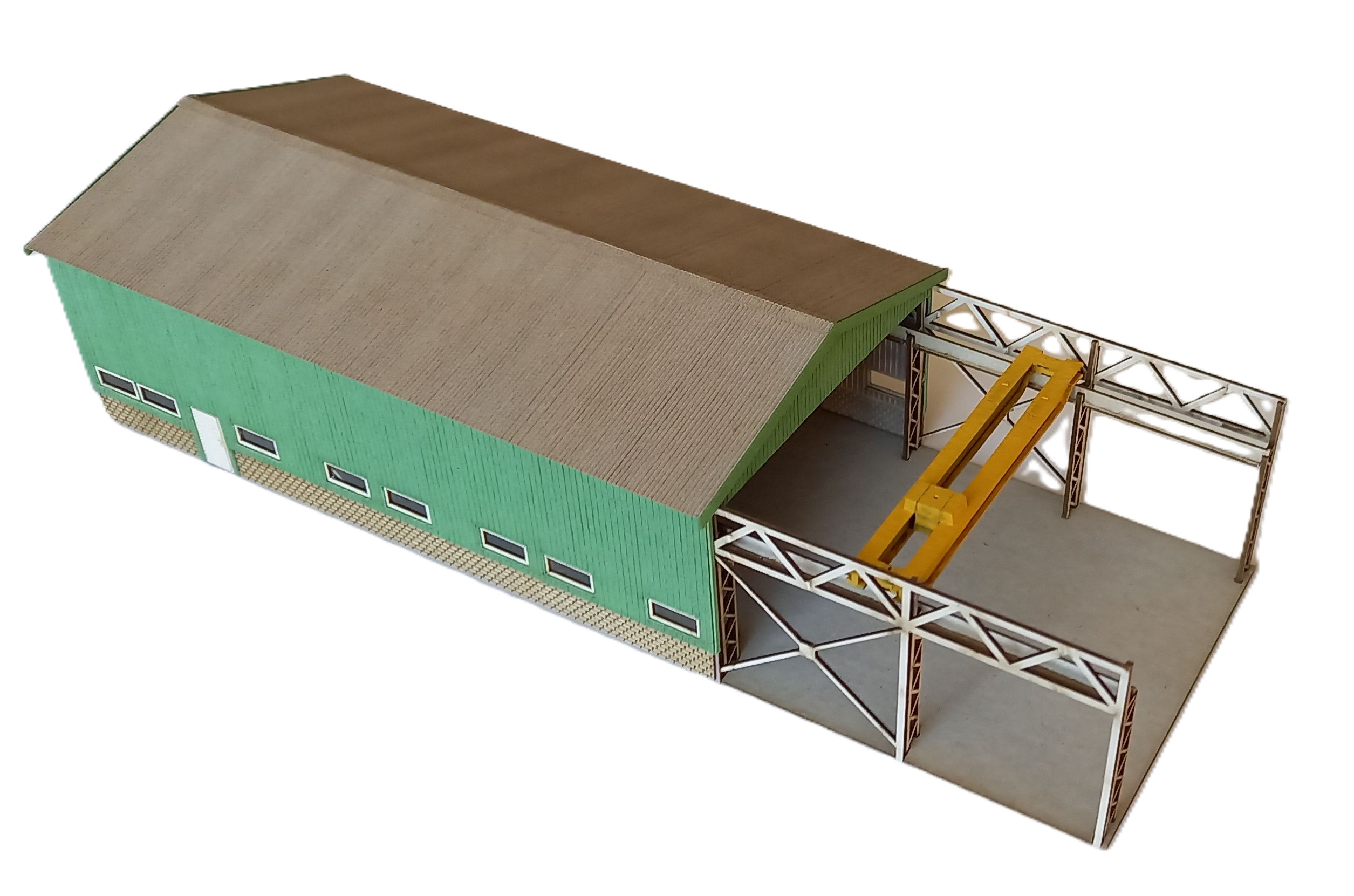 Startseite » Lasercut Bausätze Spur N » Alpiner/Süddeutscher Baustil - Spur N » Städtische Gebäude » Stahlbauhalle mit Brückenkran