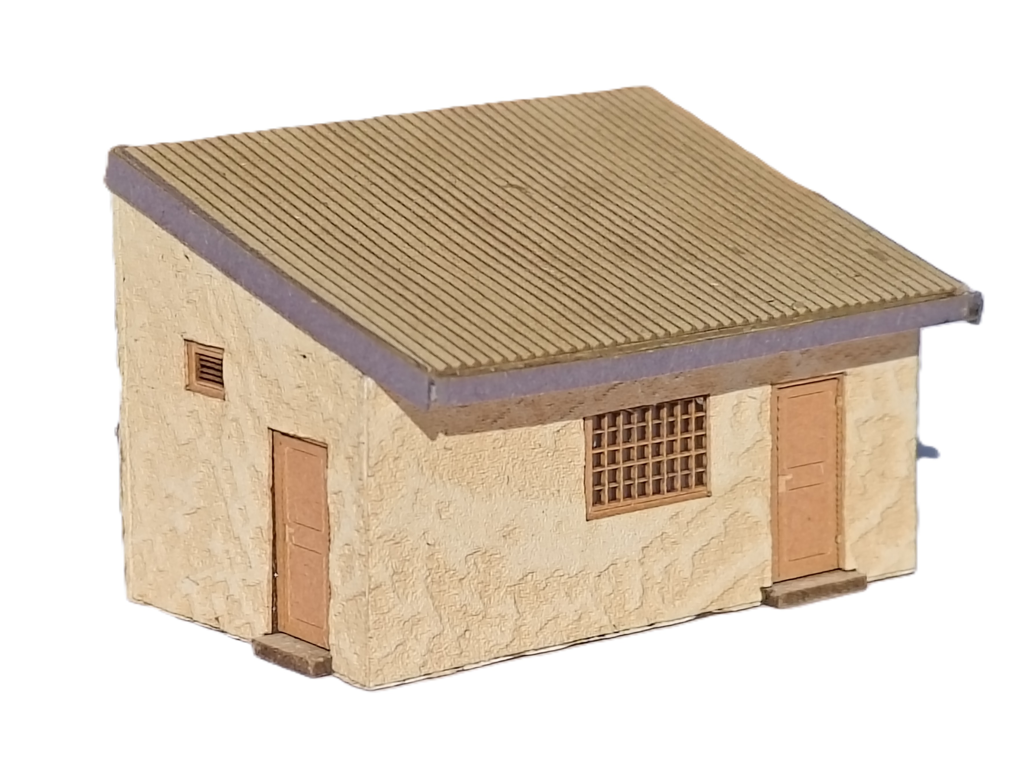 Zwei kleine Schuppen in verwitterter Putzansicht für Fabrikgelände, Hinterhöfe, Bahngelände oder im landwirtschaftlichen Bereich.